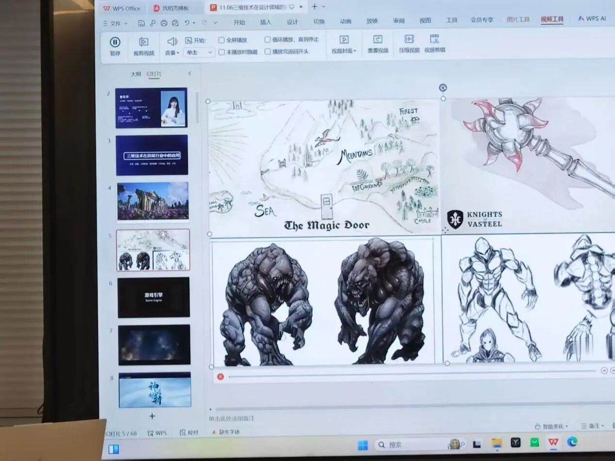 紧接着,童老师播放了一段游戏角色从无到有的完整制作视频,从最初的二维概念稿,到三维软件中的基础模型搭建,再到细分曲面、雕刻细节,最后是材质赋予、灯光渲染和动画绑定,每一个环节都清晰地呈现在屏幕上,当看到一个平面的线稿最终变成能跑能跳、表情生动的虚拟角色时,现场发出阵阵惊叹,童老师适时暂停,指着模型服饰上自然垂落的褶皱解释:“这就是三维技术的魅力所在。它不仅是‘形’的塑造,更是‘质’的还原。这些褶皱的弧度、光影的层次,甚至是布料与皮肤的摩擦感,都是让作品脱离‘纸片感’、拥有‘生命力’的关键。”