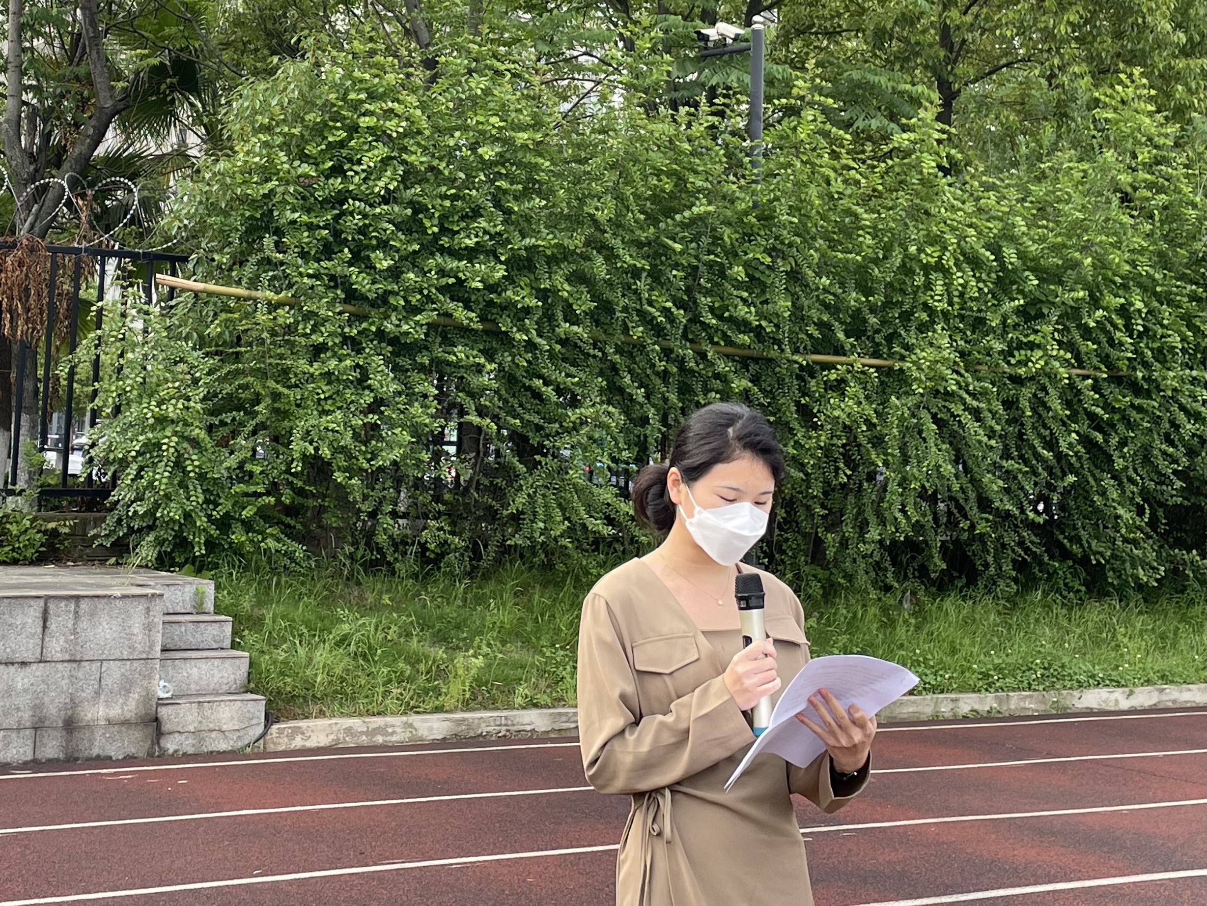 杨圆主持升旗仪式。
