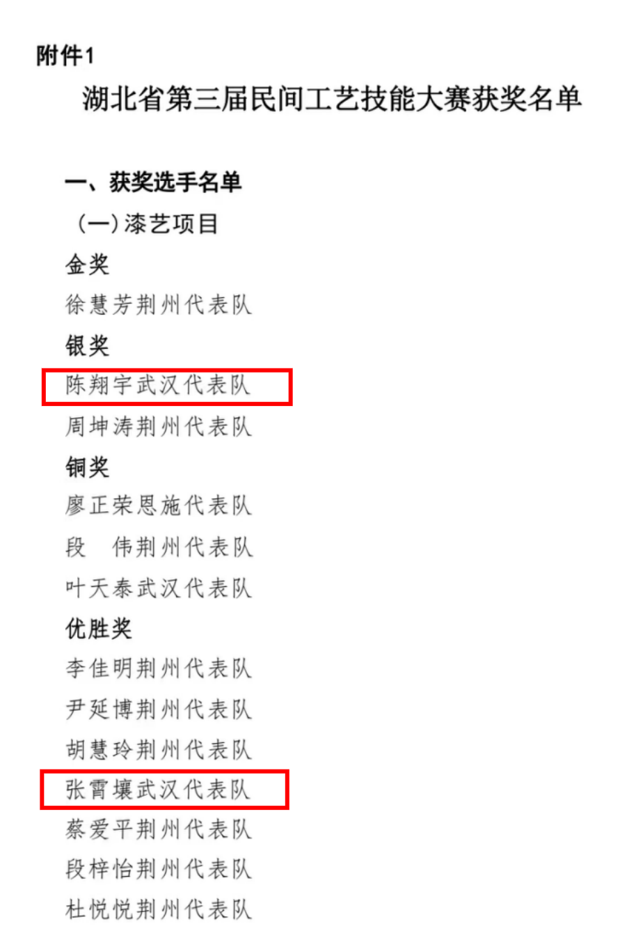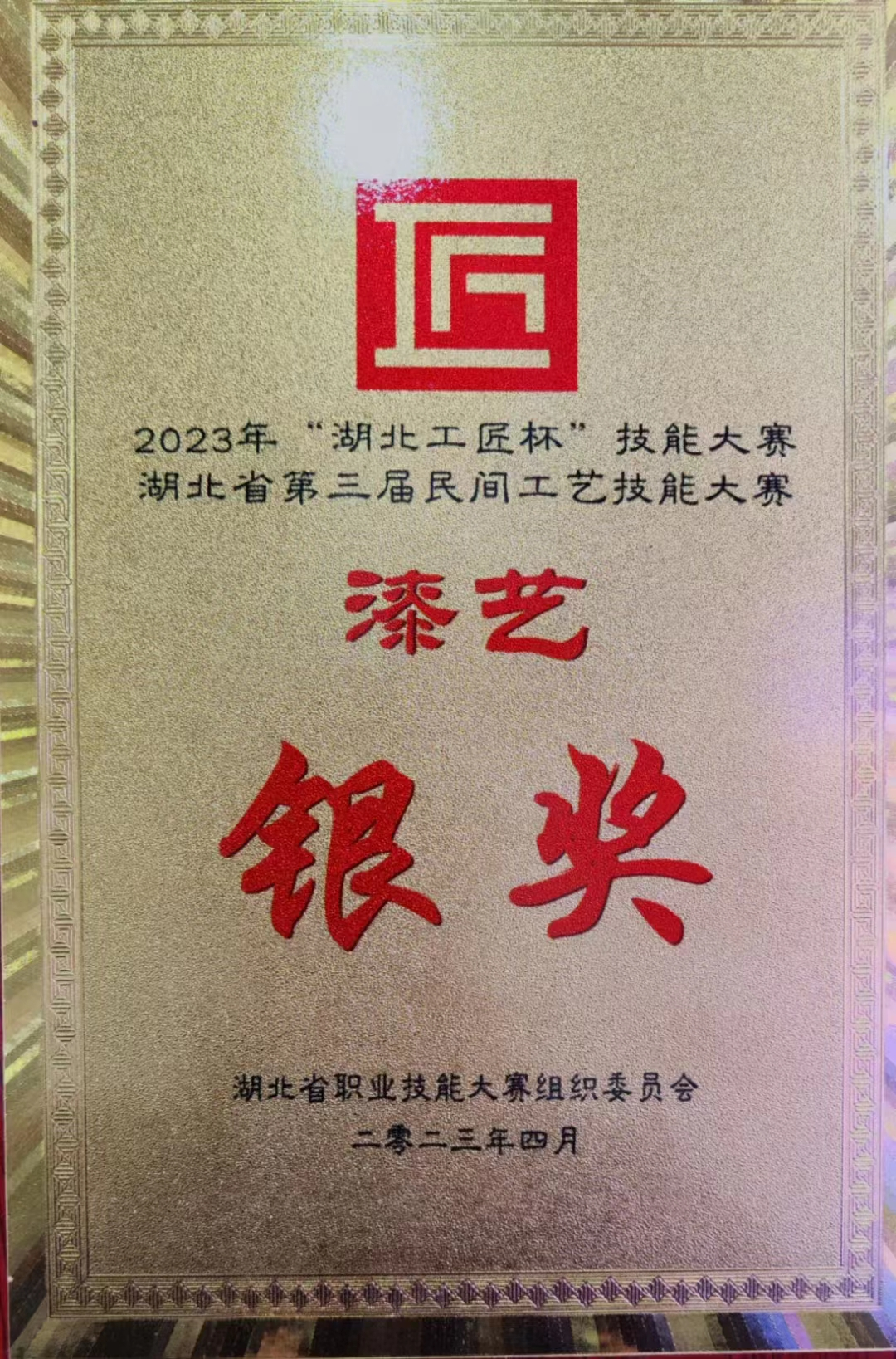 “湖北工匠杯”技能大赛——湖北省第三届民间工艺技能大赛与第二届全国工业设计职业技能大赛顺利落幕。公司参赛师生秣马厉兵在紧张激烈的现场比赛中接连斩获佳绩,荣获漆艺组项目银奖一枚、优胜奖一枚,工艺美术品设计师二等奖一枚。
