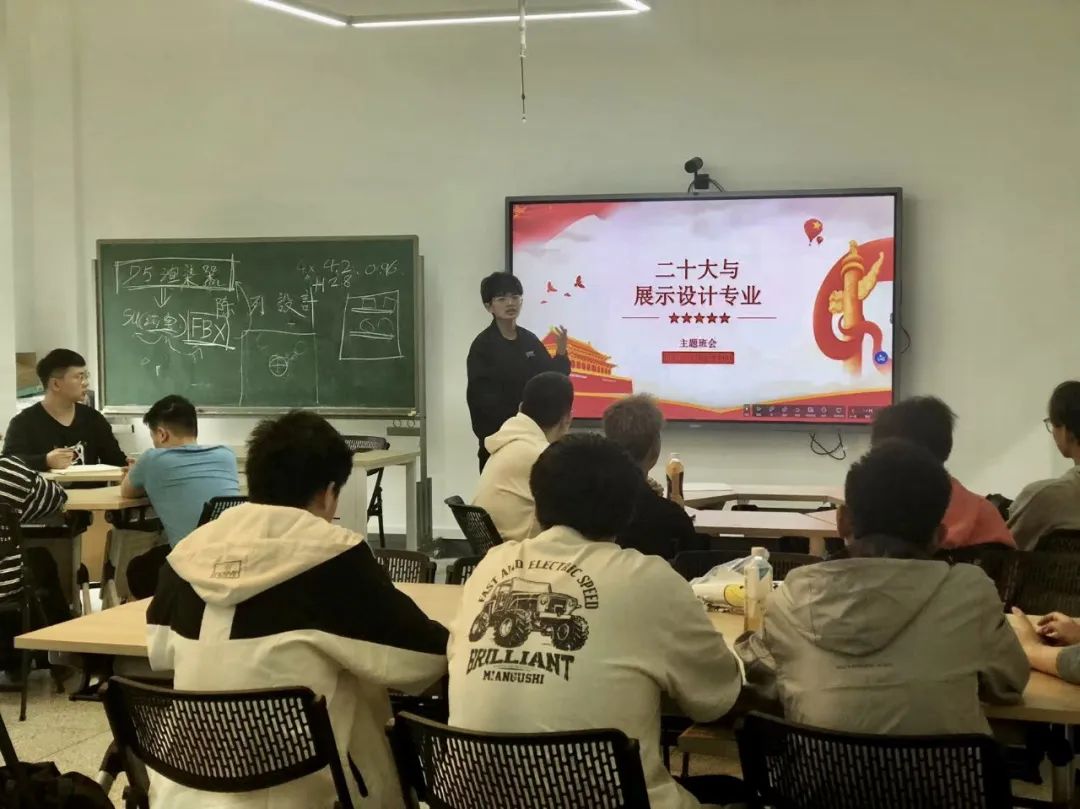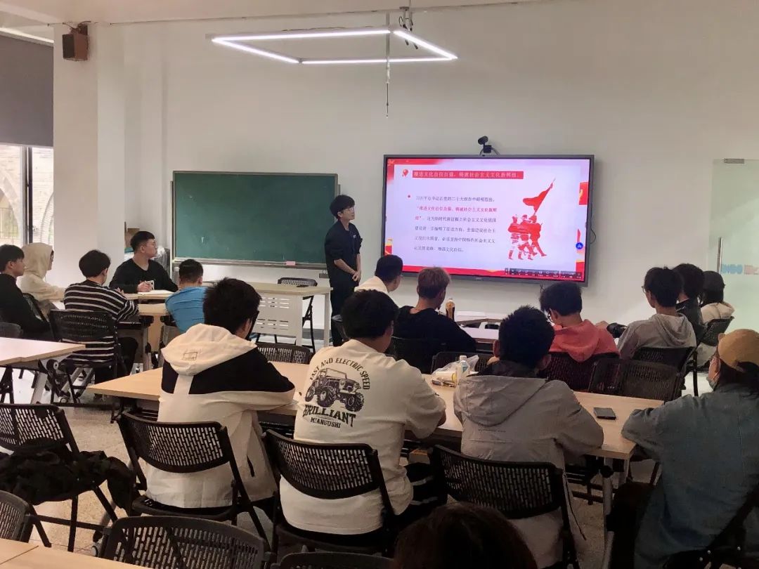 为推进文化自信自强,铸就社会主义文化新辉煌。4月27日下午,在忘荃2039开展《二十大与展示设计》主题班会活动。此次班会活动由胡迪文老师主讲,校团委组织部冯卓老师和全体辅导员参加此次班会。