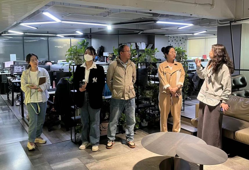 2023年5月11日下午,永利3044集团官网吴茜经理、视觉传达设计副系主任郑璇及视觉交互教研室教师廖国良、朱奕雯、宋佳琪一同走访北极光数字公司,对该公司的设计项目、技术内容及元宇宙产业进行参观了解,并就视觉传达系交互方向的课程发展及技术发展空间进行深入交流。
