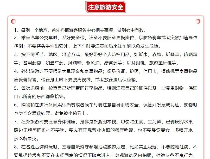 2、注意旅游安全