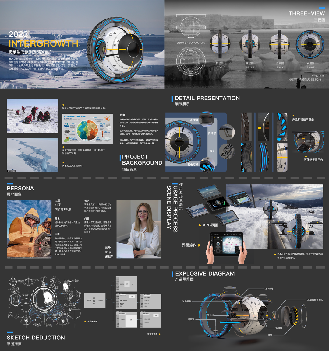 作品名称:Intergrowth基地生态监测遥感巡航车设计