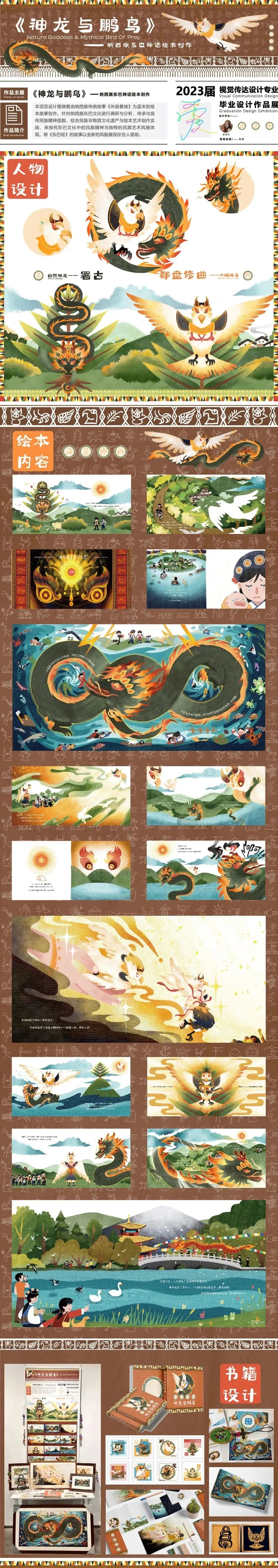 作品主题:纳西族东巴神话绘本《神龙与鹏鸟》