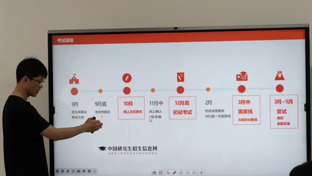 若有考研计划,需在九月就进行预报名,十月正式网上报名,十一月进行网上确认或现场确认,十二月底进行考研初试,二月底可查询初试成绩,三月中公布国家线,三到五月即可查询录取名单,进行复试或调剂。