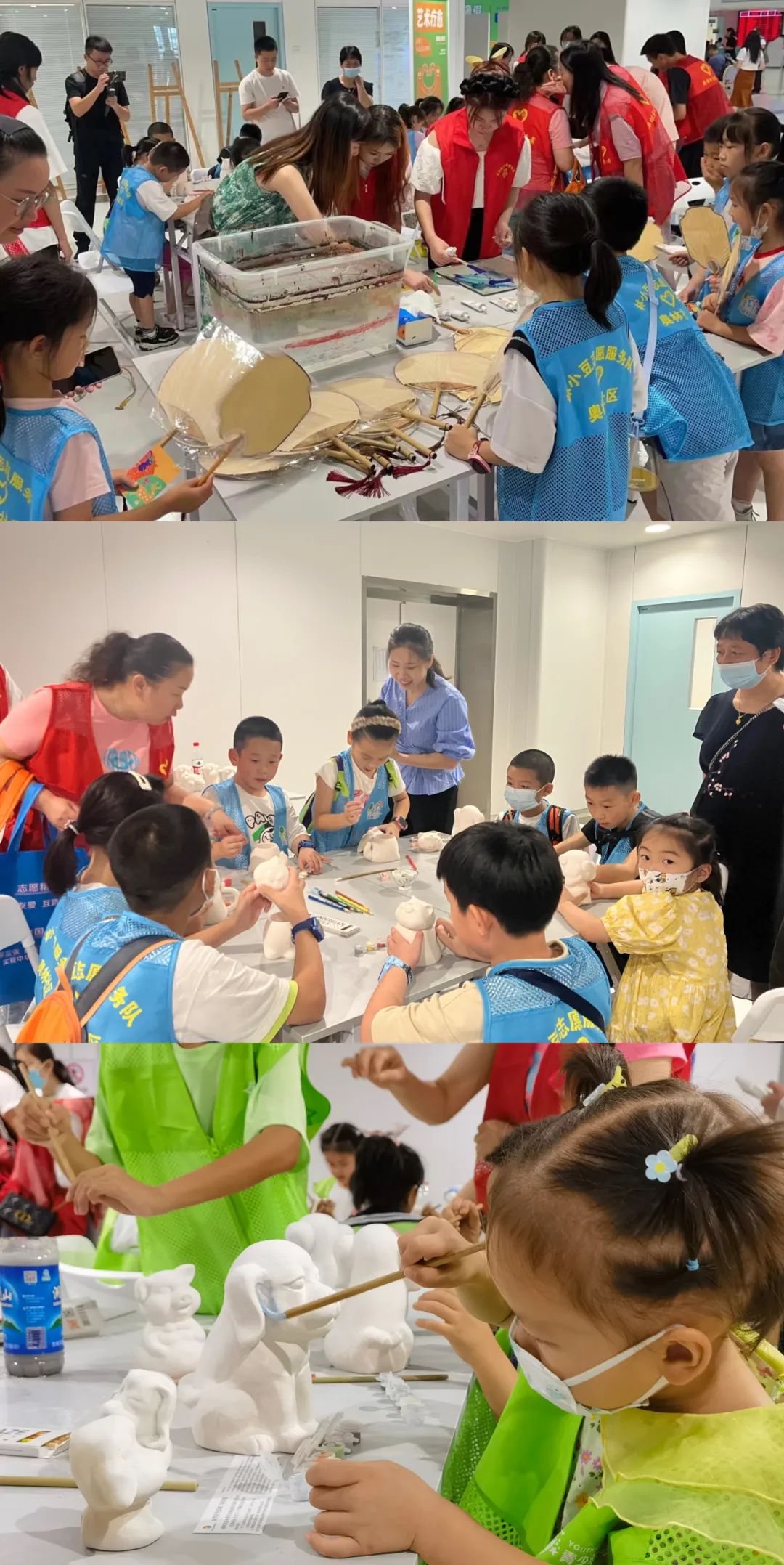 活动旨在结合公司特色,通过艺术与医学的融合,让身体与心灵同时获得疗愈。展会现场设置 “艺术科普”、“艺术交互”、“艺术互动”、“艺术疗愈”四个板块。其中,“艺术科普”板块为员工志愿者通过绘画、剪纸等艺术形式对汉字、昆虫、十二生肖等知识进行科普;“艺术交互”板块为员工志愿者通过电脑交互软件设置了体感互动;“艺术互动”板块设置了情绪解压和解密眼病两个互动项目,在员工志愿者的引导下,供观众亲身互动体验;“艺术疗愈”板块则设置了陶瓷艺术疗愈和漂流漆扇艺术疗愈等两个参与性艺术活动,观众可以在公司老师、员工的指导下在这里亲手为陶瓷和漂流漆扇上色。