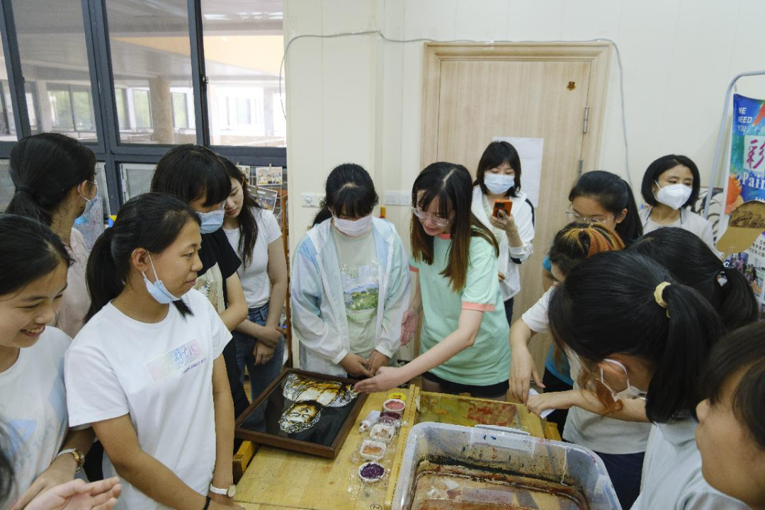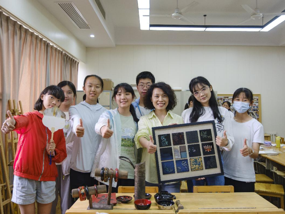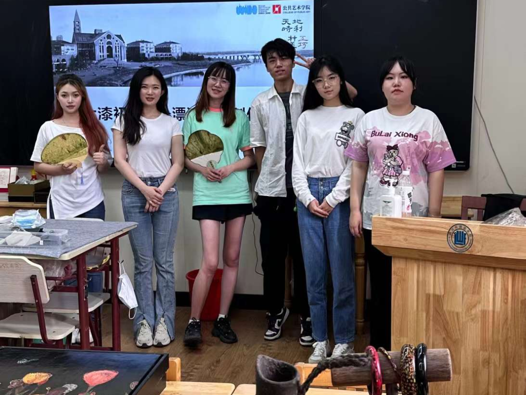 此次实践以宣传非遗文化提高员工审美和人文素养为宗旨,以校园美育实践艺术进入艺术支教等美育浸润计划为途径,定期向武汉外国语公司开展工艺美术、非遗文化等美育实践活动,发挥“大思政”与“大美育”的综合育人作用。在实践中我们把非遗大漆带入武汉外国语公司进行资源共享,激发了现代青少年对中国传统技艺大漆的兴趣,提高员工的人文素养。