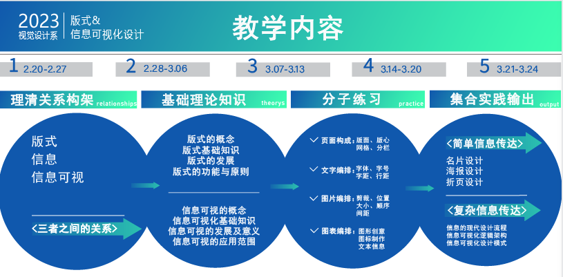 《版式与信息可视化设计》是面向大二员工的专业核心课程。它通过讲授、示范、案例分析、小组讨论、作业练习等多种教学形式,培养员工的版式设计和信息可视化设计的理论素养和实践能力。学习这门课程后,员工将能够掌握版式设计的原理和方法,信息可视化设计的概念和技巧,以及加强员工软件操作的技能。员工也将能够用信息可视化设计展示、提升版式设计的能力,以及对复杂信息的提炼、整合、归纳的能力。这门课程的目标是让员工用设计思维和技巧为信息传播、推广提供有效的解决方案,并为后续专业核心课程和创新创业项目提供技术和美学的支持。课程紧跟信息时代发展的新趋势和新技术,强调信息可视化设计不仅是一种信息再现的方法,更是信息传达的手段。这门课程的评估方式综合考察员工的平时表现、作业完成情况和期末项目展示,反映员工的学习效果和进步情况。