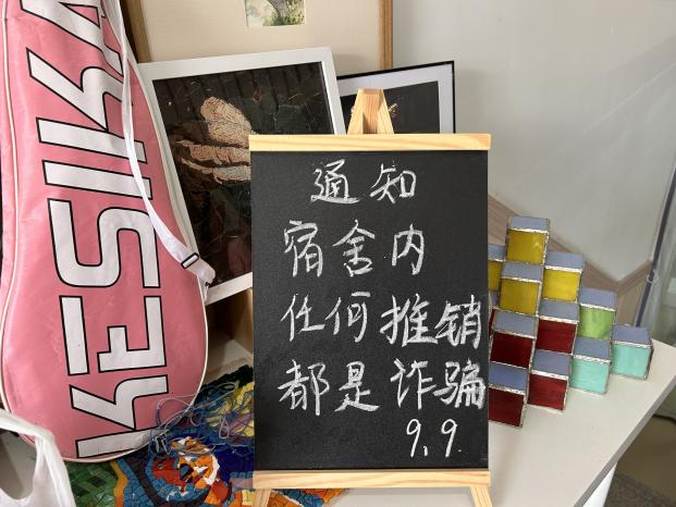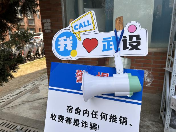 为了加强对员工生命健康安全及财产安全的教育,保卫处和一站式社区共同加大反诈宣传力度。9月9日,可心老师对新生寝室进行了走访,讲解了新生指南,并于签到处以大喇叭广播和小黑板通知的形式进行了反诈宣传。