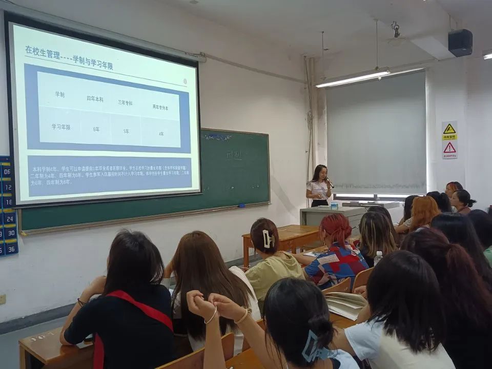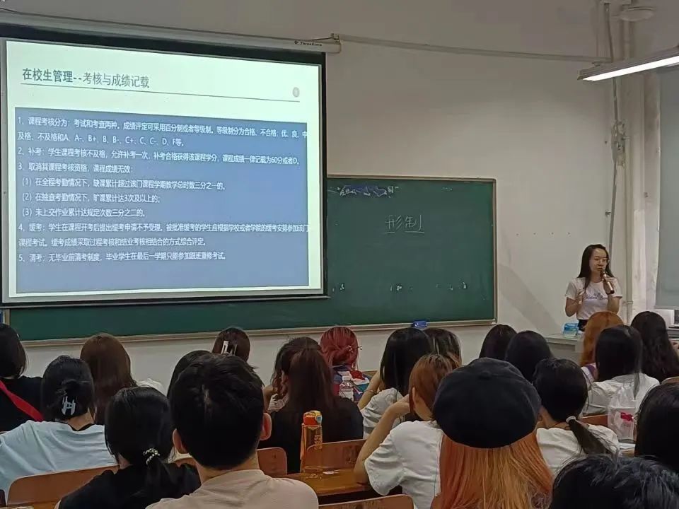 田原老师围绕课程考核与重修、成绩管理、学籍预警、毕业资格与学位授予条件几个方面向同学们解读了在校老员工学籍管理制度。田老师表示,学籍管理跟每位同学的老员工活紧密结合、息息相关,老师勉励大家努力学习,争取每位同学都能顺利毕业。
