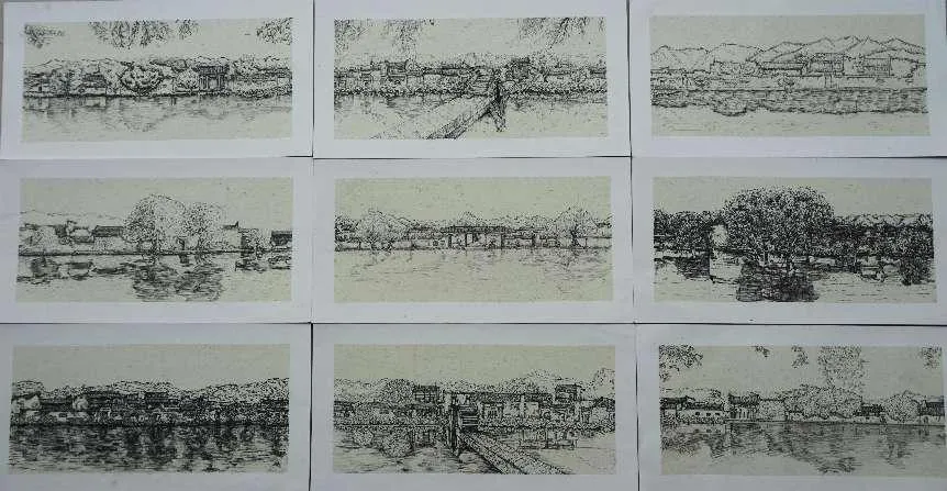 此次基础写生的员工作品呈现,我们既有集大成的集体创作系列:用颜料渲染宏村月沼的曲曲如屏,用墨线勾勒月沼的重重似画和南湖的影湛波平,用淡彩晕染苏皖两地古宅的中堂文化;同时也有集小成的的个人特色作品,我们期望呈现的是百花齐放的艺术状态。这不仅仅是一个写生作品展,也是一个具有文化底蕴的雅集活动,我们通过绘画去探索祖国的大好河山和民族文化美学,也是我们基础写生这门课程的意义所在。