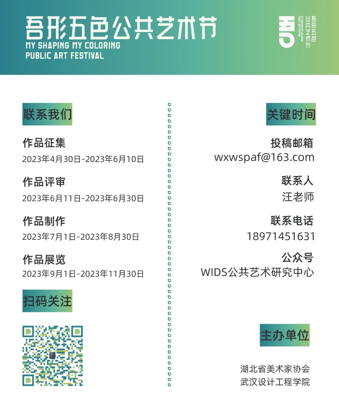 “吾形五色”公共艺术节旨在通过参与性、观念性、艺术性、环保性、综合性的艺术节作品,体现新时代艺术家、高校师生对生态、艺术、科技、创新、数字等时代主题的思考。