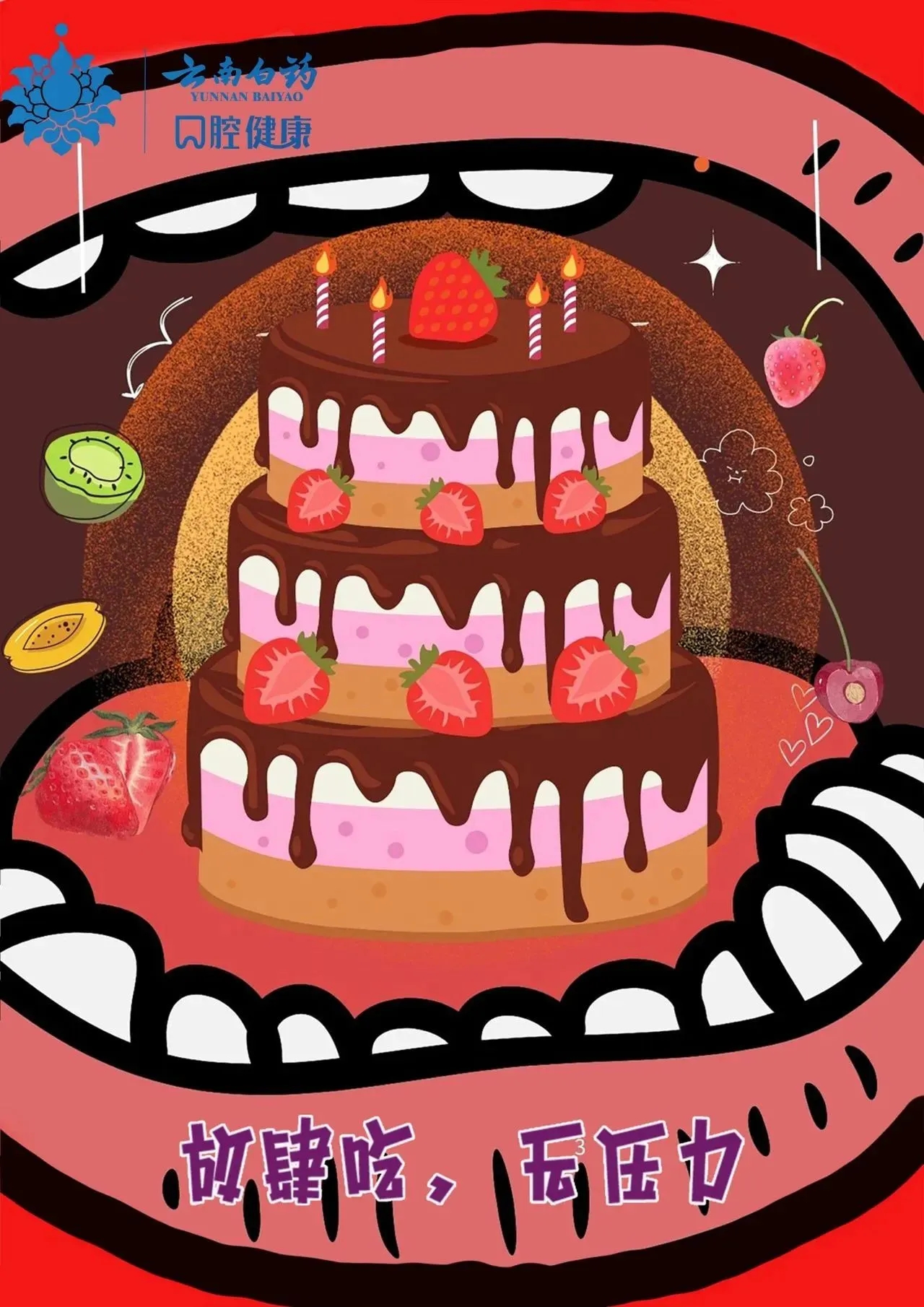 设计说明:首先,这个系列海报的整体风格十分夸张大胆,采用了红色作为主色调,给人一种热情火辣的感觉。而且在布局上也非常巧妙,将云南白药的广告语与口腔美食相结合,强调其天然疗效。海报中间是一张张开的嘴,以此来代表云南白药对于健康的关怀与呵护。通过细腻的描绘和渐变效果,使得口腔与美食栩栩如生,仿佛可以闻到它们散发出来的芬芳气息。在文字方面,运用了简洁明了、易读易懂的字体,并加入些许手写风格元素,增加了文艺气息。