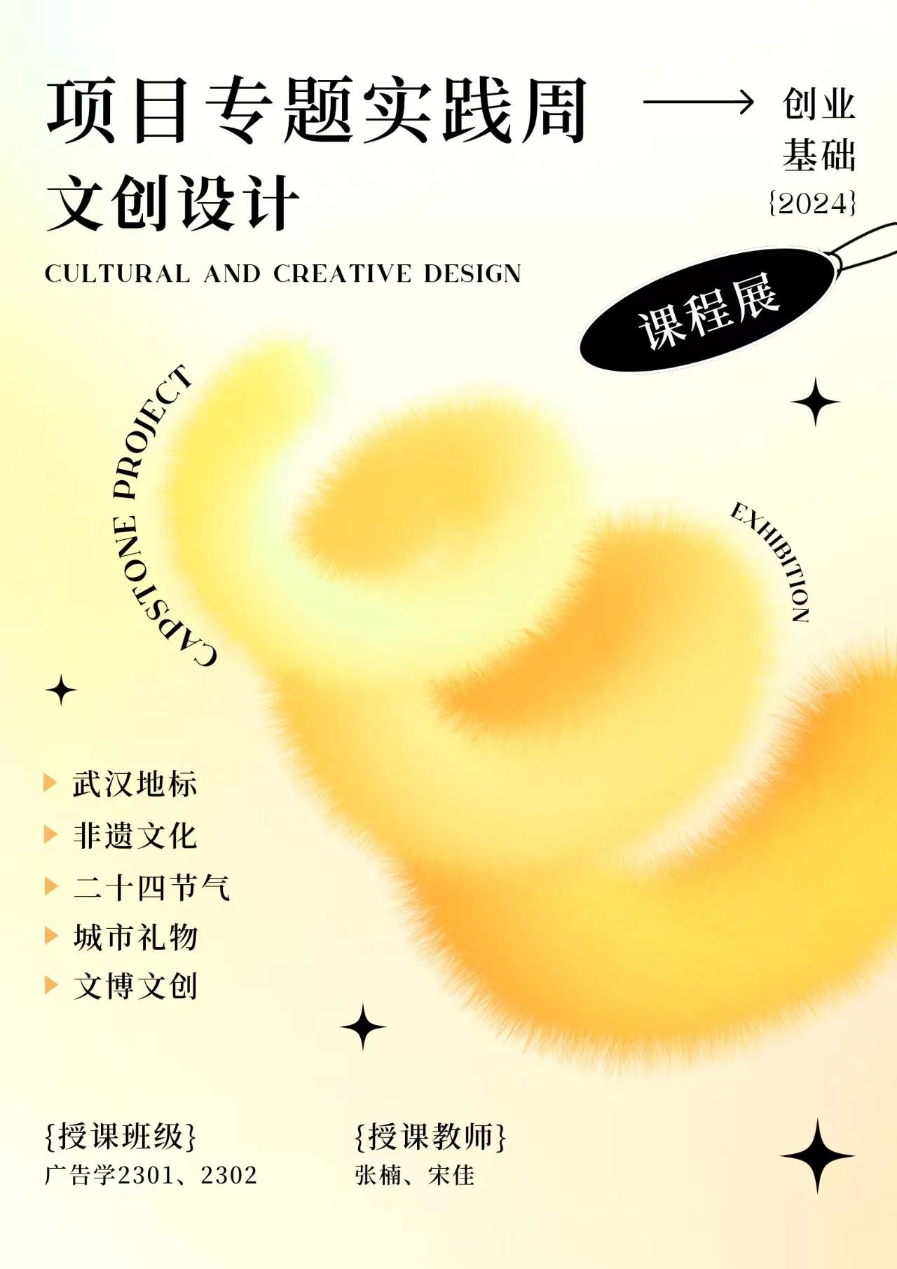 《项目专题实践周(创业基础)》是广告学专业集中性实践环节课。通过本课程的学习,员工能提升关于文创产品现状和发展趋势的专业认知,提高文创产品的设计能力;能从专业的认知高度去分析问题,培养自我在广告创意方面的专业素养;能深化对优秀的中华传统文化的认同和继承等,为中国广告业和设计业输送优秀的创新人才打下基础。