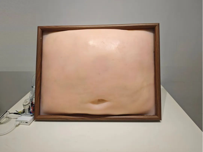 作品说明:呼吸,作为生命的基本体征之一,无时无刻不在进行。在日常生活中,我们往往忽视了这一过程的复杂与美丽。本装置以此为灵感,希望通过艺术的手法,让观众重新审视并感受呼吸的奥秘。当装置启动时,一体式气泵开始工作。气泵通过软管向气球注入空气,使气球逐渐膨胀模拟吸气过程。当气球达到预设的膨胀程度后,控制系统会关闭气泵并打开排气阀,使气球内的空气逐渐排出,模拟呼气过程。这件模拟肚子呼吸的艺术装置旨在重新观察并感受呼吸的奇妙,再平常不过的小事情也值得我们的关注。