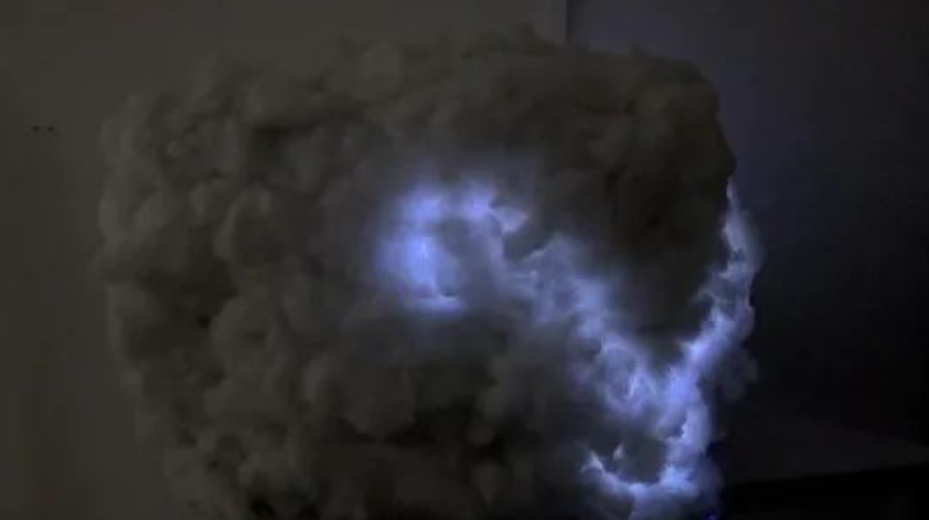 作品说明:《包裹的礼物》是一件以自然现象为灵感的艺术作品,再现了雷雨天气中电光与云层交织的壮丽景象。作品整体呈现出一团层次分明的云团,其表面弥漫着朦胧的氤氲感,内部点缀着闪烁的蓝白光芒,宛若雷电穿行其中。静态的云雾与动态的光影相结合,传递出一种静谧与力量并存的氛围。雷电的亮光既象征了自然的不可控性,也引发观者对力量与未知的思考。而整体色调的冷峻和微光的律动,则传递出一种科技与自然交汇的独特意境。实现了视觉上的震撼和沉浸感。它邀请观者以新的视角去体验自然现象的奇妙,将人类对雷雨的敬畏之情与现代艺术的表达手法巧妙结合。