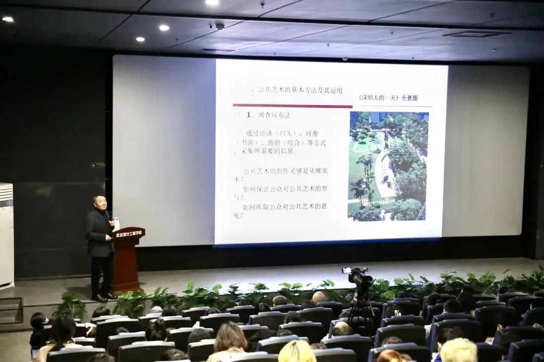 接下来,孙教授从什么是方法和方法论、公共艺术为什么要强调方法和方法论、公共艺术的基本方法及其运用三个方面系统地讲解了公共艺术的方法论及其运用这个课题。讲到为什么要强调方法论时,他指出观念和方法是公共艺术的核心,优秀的公共艺术一定是好想法和好办法的统一。对于教育,他提出公共艺术的教育主要是观念和方法论的教育,并对公共艺术方法论教育的主要内容给出了比较有针对性的指导。在公共艺术的基本方法及其运用方面,强调了公共艺术的方法应该是偏重社会学的方法。并通过实际案例生动地讲述了调查问卷法、文献研究法、观察研究法、介入研究法、模拟呈现法、定量分析法、定性分析法共七个具体的方法。